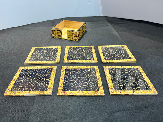 Set of Six beautiful marble coasters with Rajasthani meena artwork