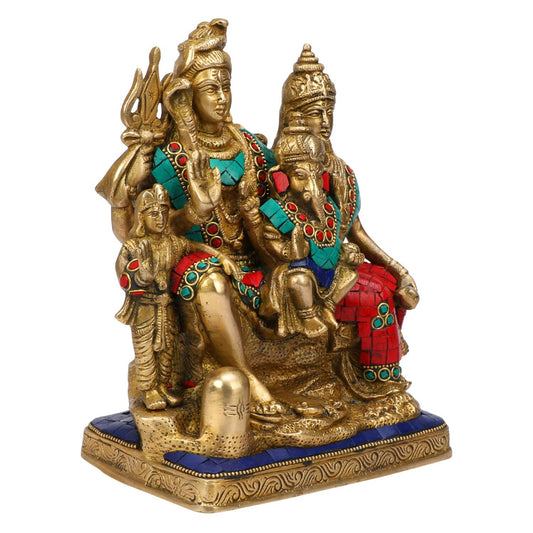 Brass Lord Shiva, Parvati, Kartikeya and Ganesha Idol - Shiv Family Parivar Idol - With stoneworkRegular price £189.99Regular priceUnit price per-
