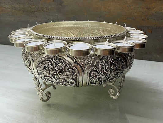 Silver plated handcrafted decorative Urli with detatchable tlight holder. Diwali gift, Wedding gift, home decorRegular price £220.00Regular priceUnit price per-