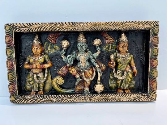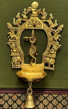 Handcrafted Brass Krishna Prabhavali with wooden frame