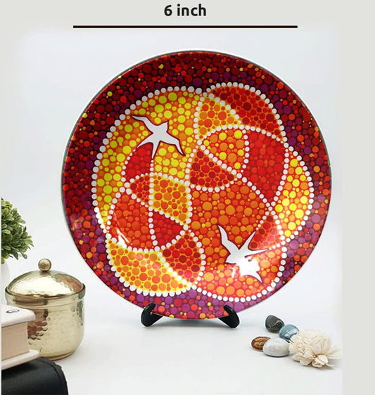 Hand crafted Madhubani Art Ceramic Plates with Stand, Decorative Wall Plates