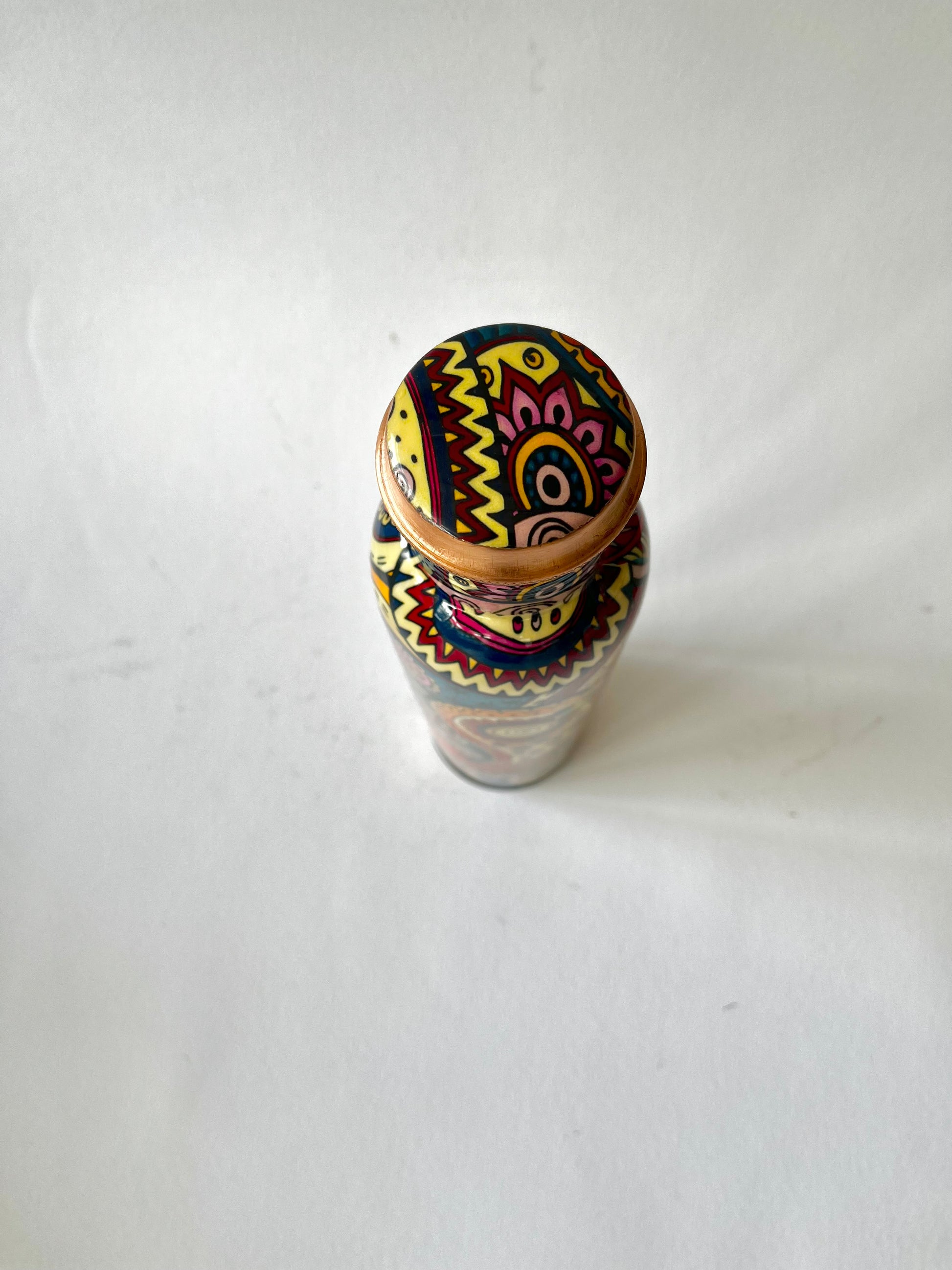 Known for its natural antimicrobial properties, copper helps keep your water pure and refreshing. Perfect for home, office, or on-the-go use, this stylish bottle not only promotes wellness but also serves as a beautiful decor item. Embrace the blend of tradition and artistry with our printed copper water bottle.