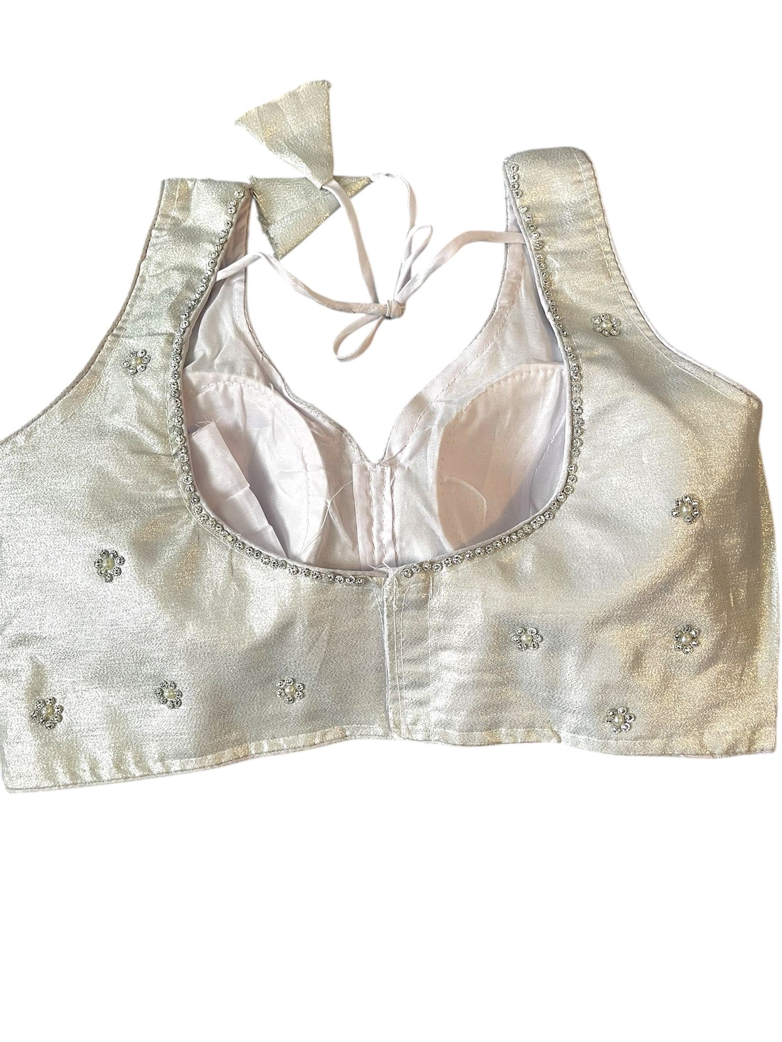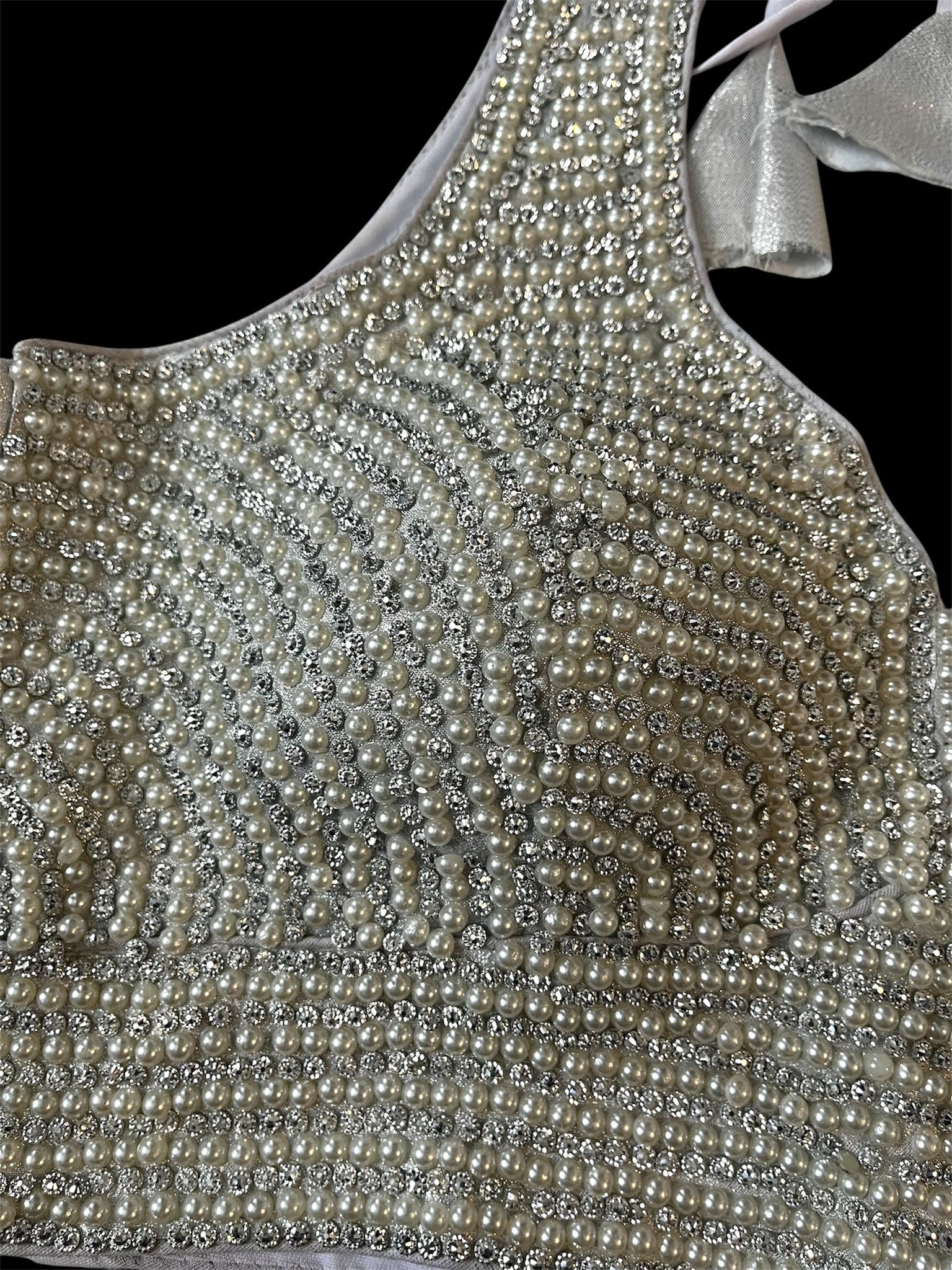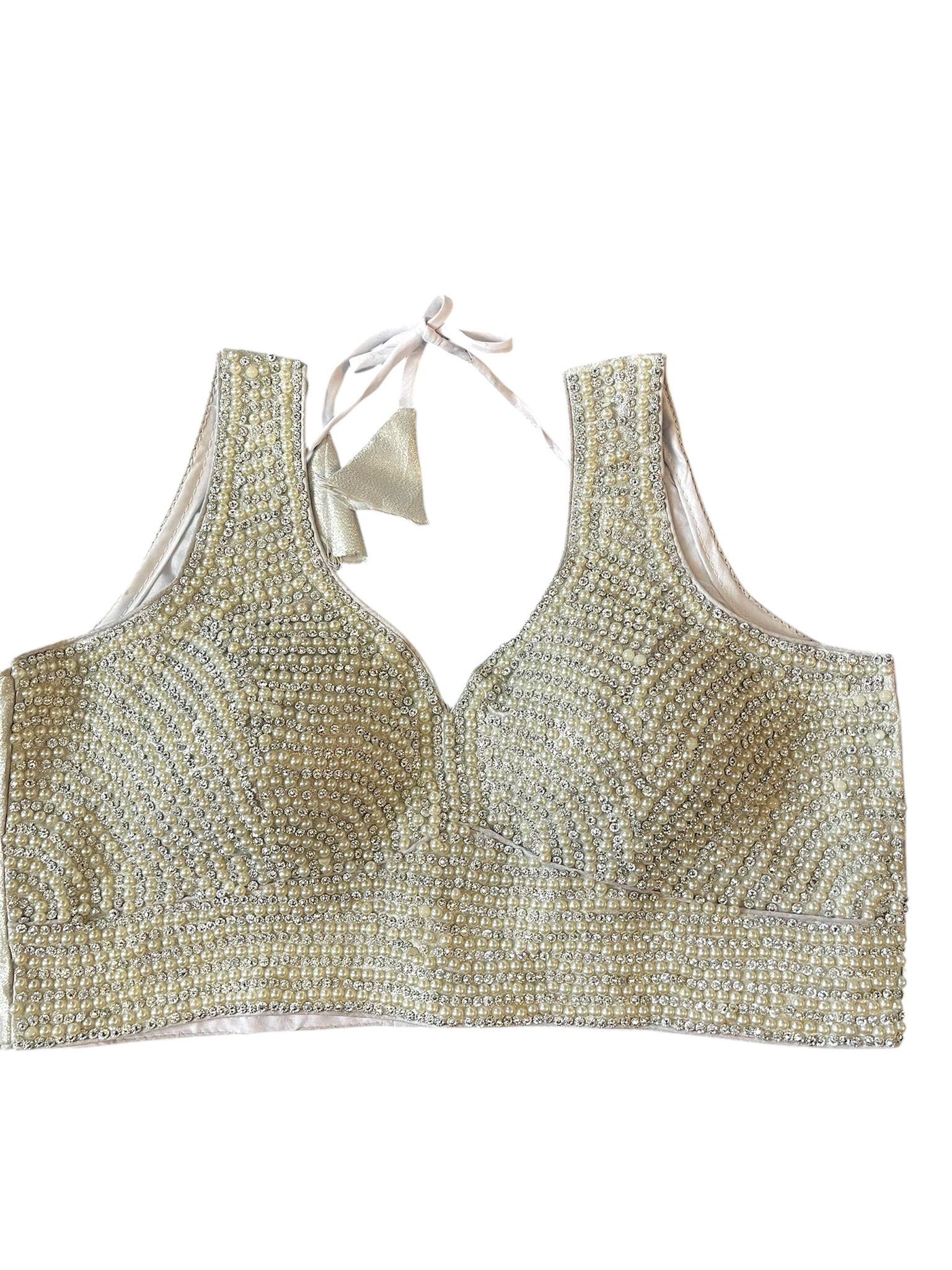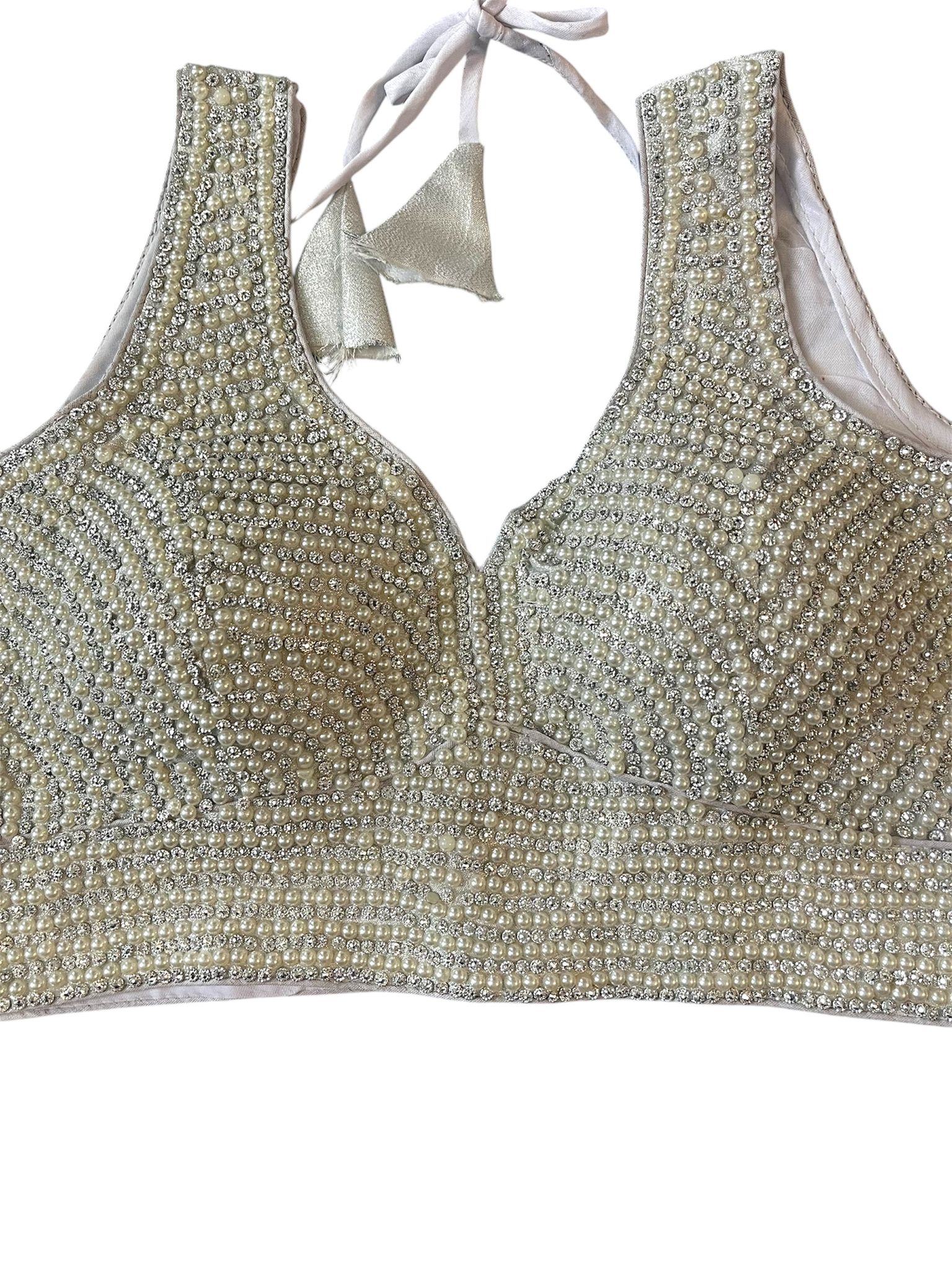 Indian Designer white beads Saree Lehenga Blouse Sleeveless sabyasachi style